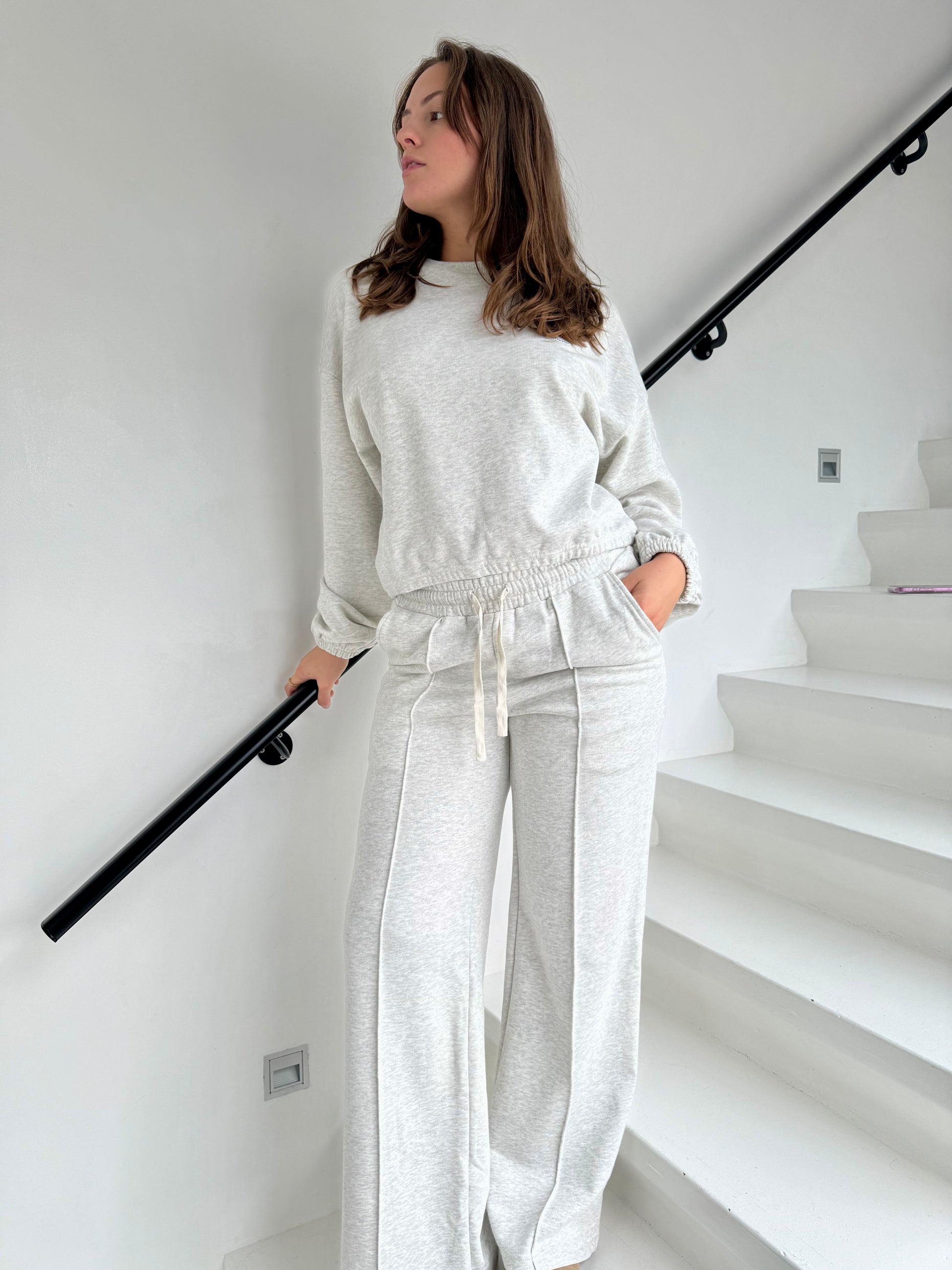 Ensemble jogging Marlo confectionné en coton de qualité, offrant douceur et respirabilité au quotidien. Le haut présente une ceinture élastique à la taille pour un ajustement personnalisé, agrémenté d'un petit écusson brodé au cœur. Le pantalon adopte une coupe droite épurée, sublimée par une ligne contrastante qui court le long de l'avant pour un effet moderne et affirmé. Parfait pour conjuguer confort et style, cet ensemble devient votre allié incontournable pour les moments de détente comme pour les sorties urbaines.