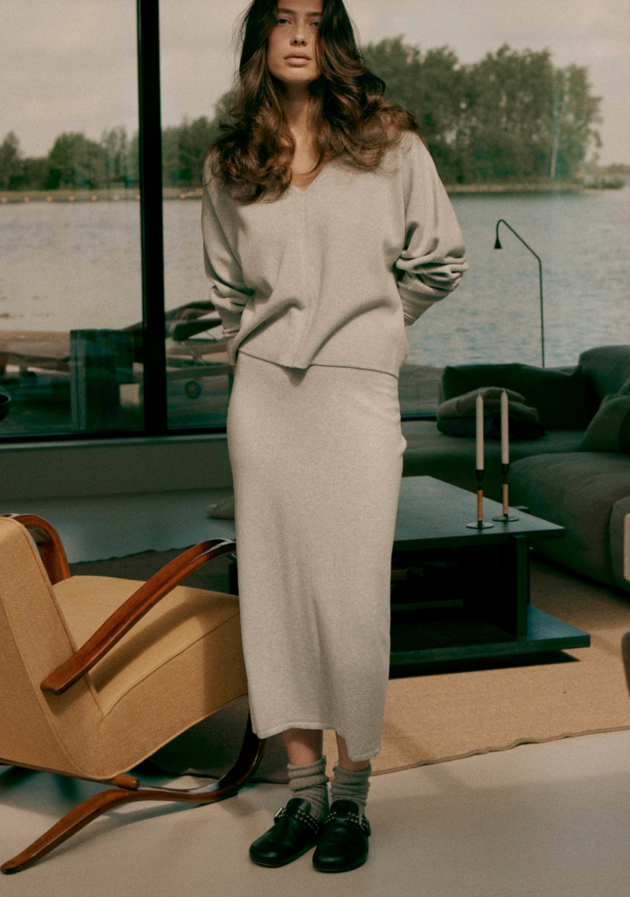 Skirt longue droite gris mailles fines